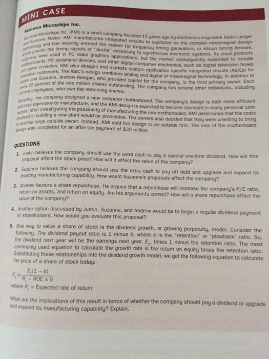 Solved Mini Case Microchips Inc Lownusrochips Inc Kmi Is Chegg Com